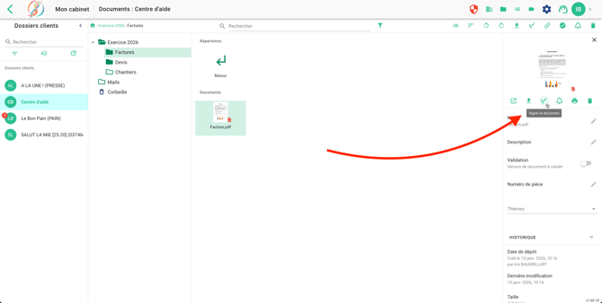 Une copie du document sera créée sur Welyb, avec une icône vous indiquant que le document est en attente de signatures.