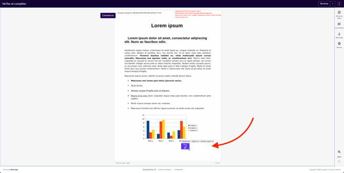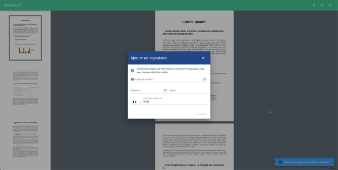 Cliquez sur la page à l'endroit où vous souhaitez que votre signataire appose sa signature pour renseigner ses coordonnées et remplissez les champs.