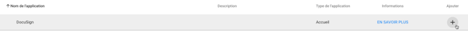 Une fois dans les applications, recherchez l'application DocuSign dans la barre de recherche puis cliquez sur le + pour l'ajouter aux applications présentes sur votre portail.