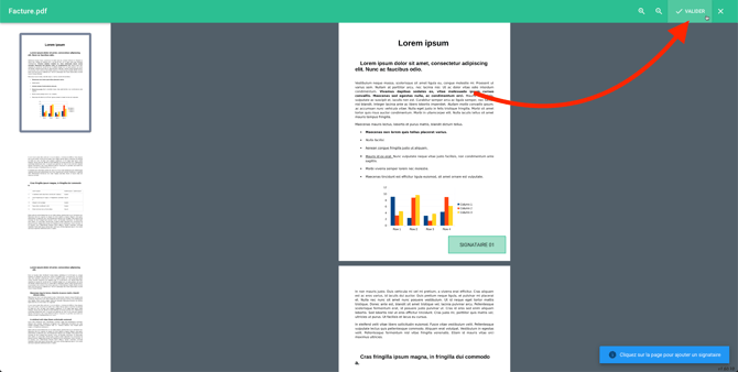 Une fois que vous avez ajouté l'ensemble des signataires, cliquez sur Valider en haut à droite pour terminer la procédure.