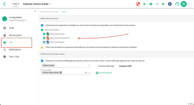 Une fois dans les paramètres, vous trouverez les options à activer dans le menu GED :