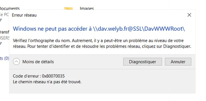 Tout d'abord, vérifiez que l'outil WebClient est correctement paramétré. Cette étape permet de résoudre la très grande majorité des problèmes rencontrés avec le lecteur réseau.