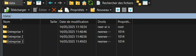 Alors, le contenu du répertoire “data” sur le SFTP (partie de droite) devra ressembler à ça 👇
