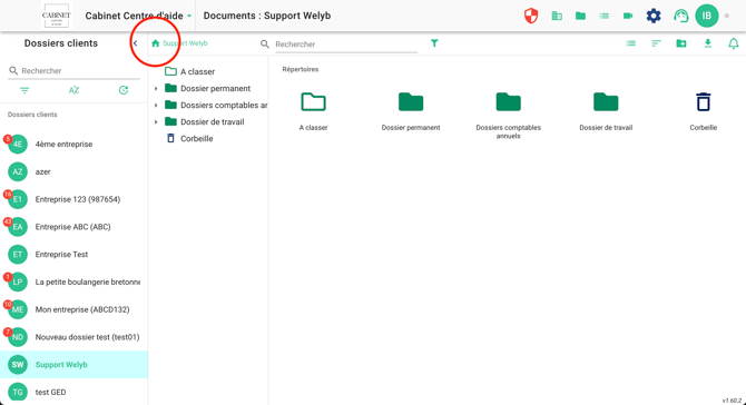 1) Placez-vous à la racine de votre dossier en cliquant sur l'icône de la maison entourée en rouge ci-dessous. Si vous n'êtes pas sûr d'être à la racine, elle se présente comme ceci : les répertoires du volet de droite et de gauche sont identiques.