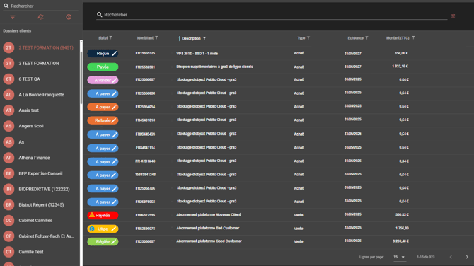 de visualiser et modifier les statuts des factures (reçue, payée, validée, refusée, en litige, etc.) directement depuis le portail ;